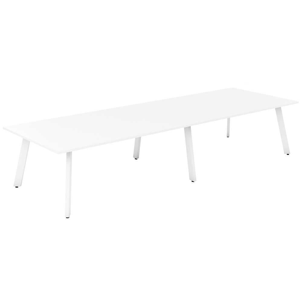 The Flare table, perfect for boardrooms, meeting rooms, or premium workstations, features stylish "beam style" splayed steel legs in Matte Black or Arctic White